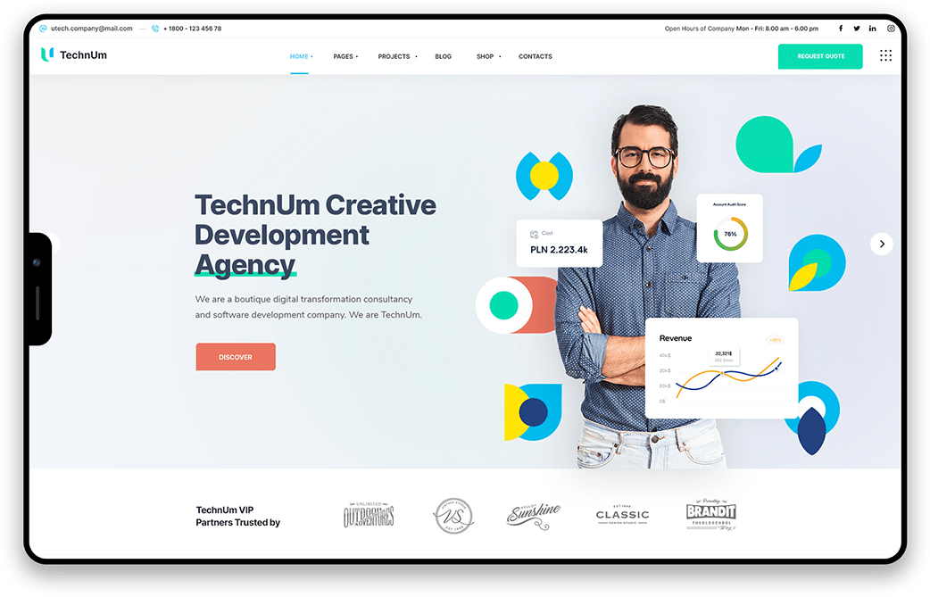 Technum WordPress Theme includes more than 100 wonderful elements for building different creative pages and blocks for your website